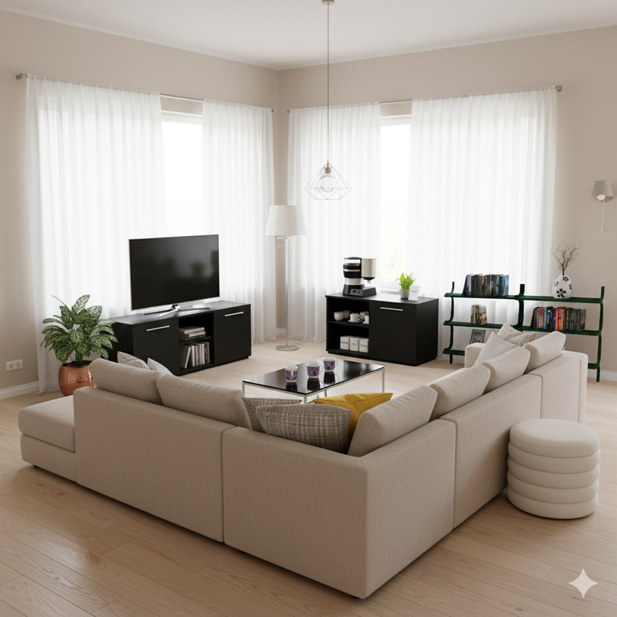 Bundle of TV Table and Coffee Table - MDF wood - Black & Beige