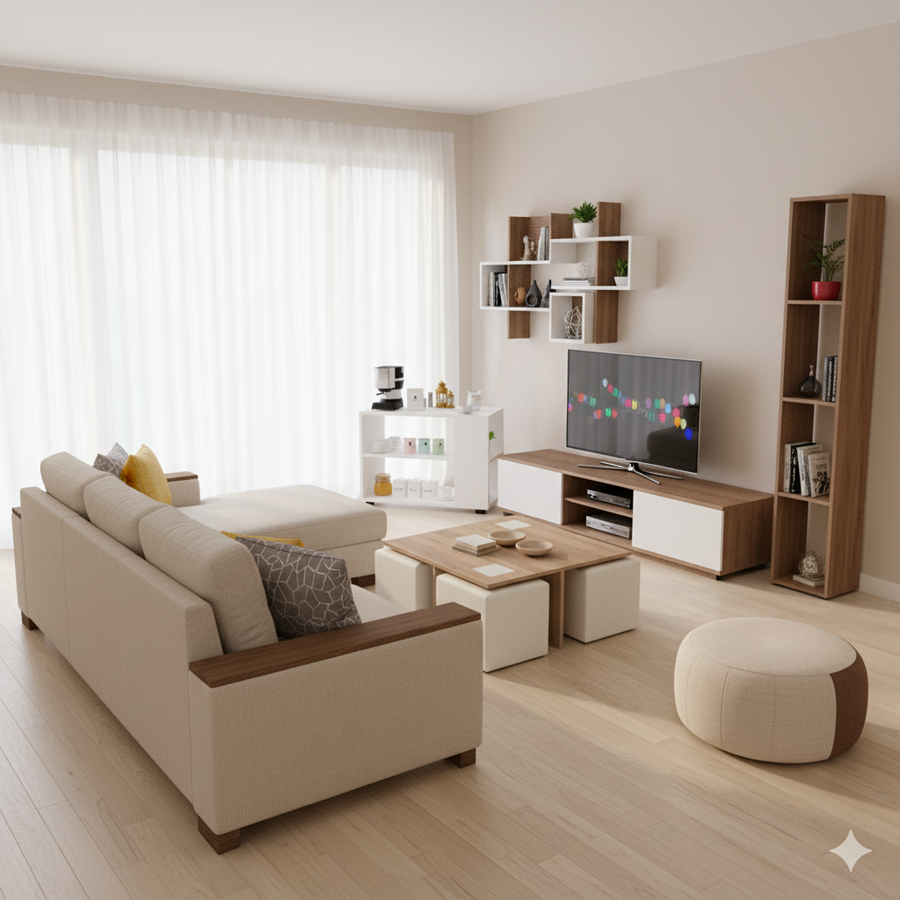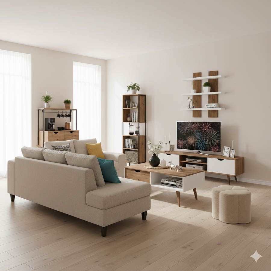 Bundle (TV Unit & Coffee Table) - MDF Wood - Multi Color