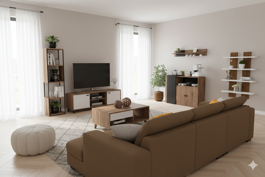 Bundle of TV Table and Coffee Table - MDF wood - Brown