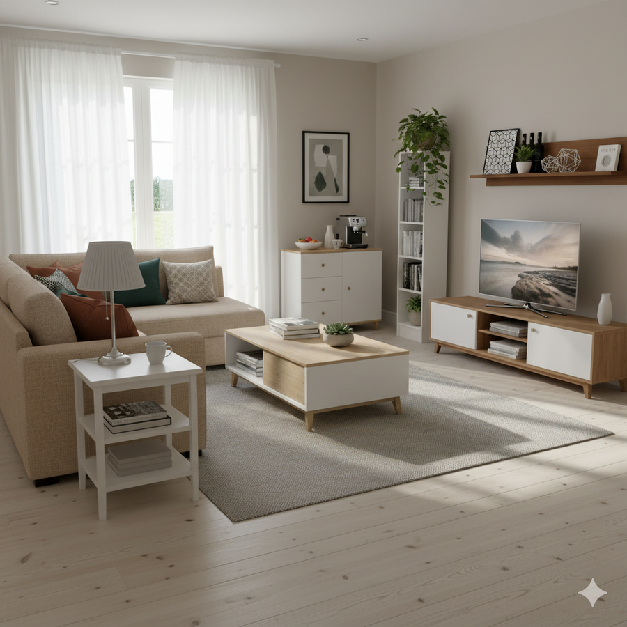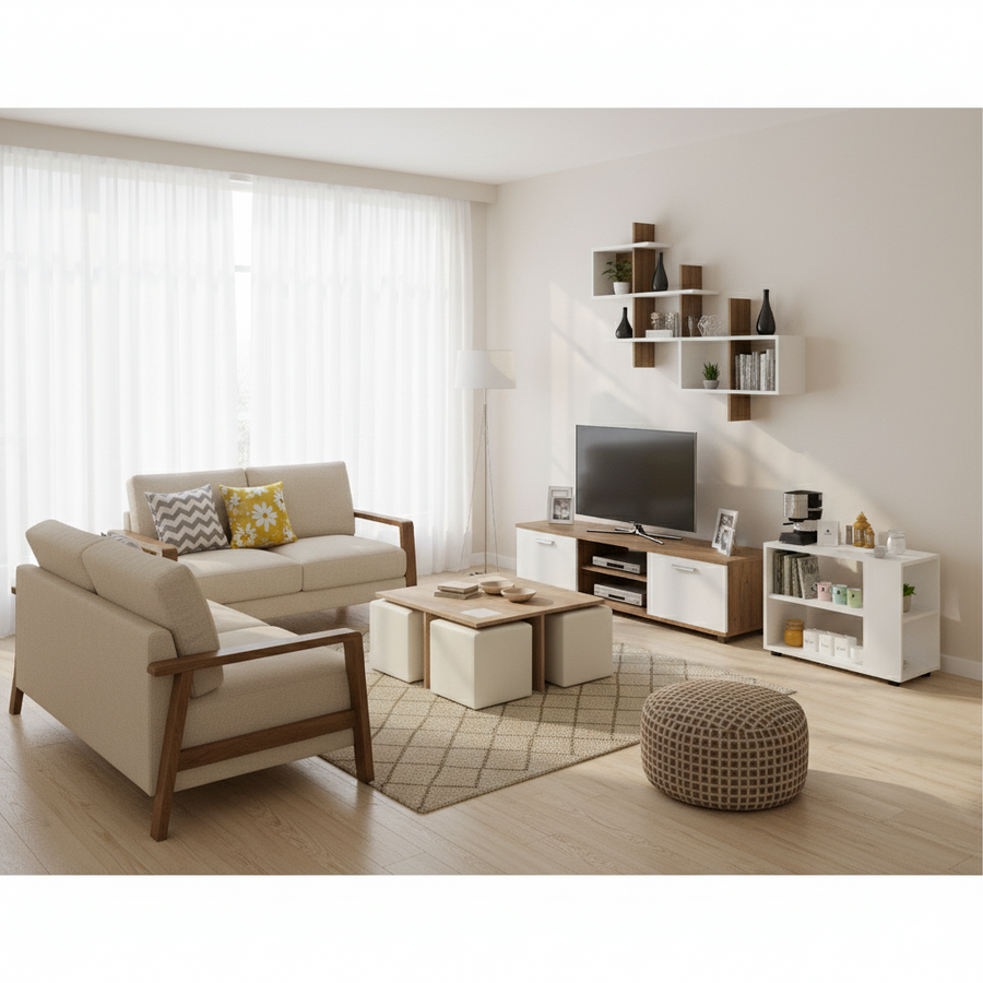 Bundle of TV Table and Coffee Table - MDF wood - Brown & White