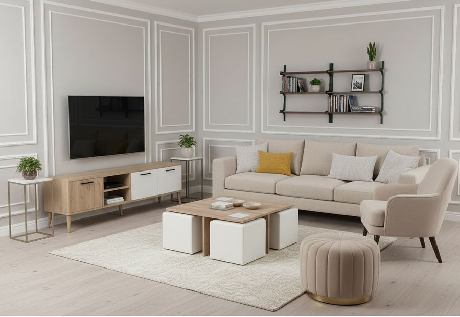 Bundle (TV Unit & Coffee Table) - MDF Wood - White & Beige