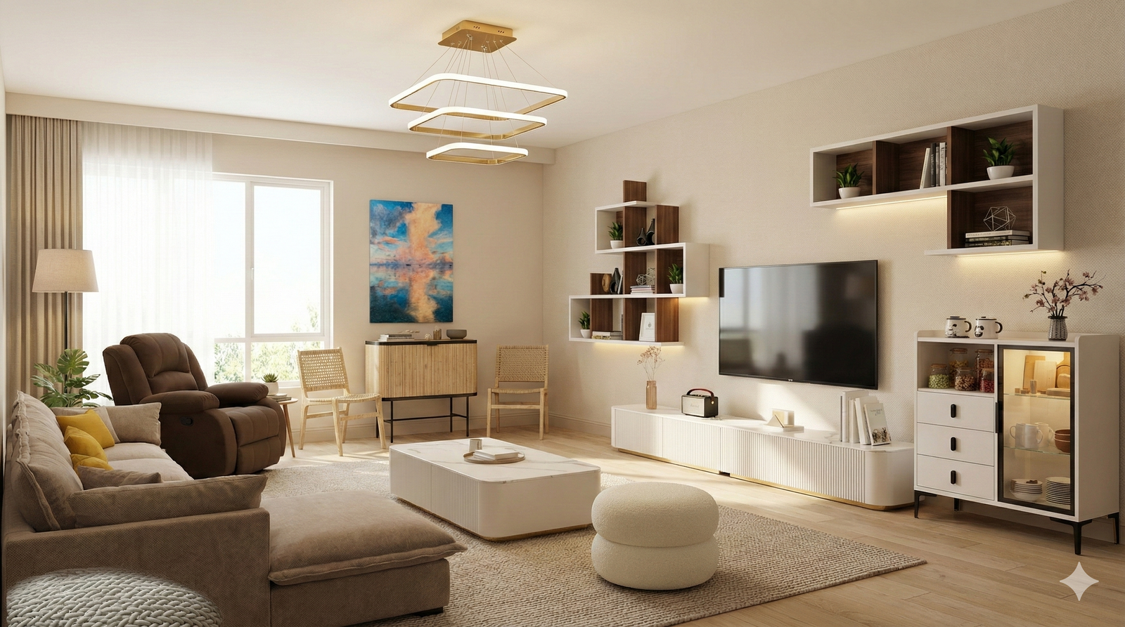 Bundle (TV Unit & Coffee Table) - MDF Wood - White & Beige
