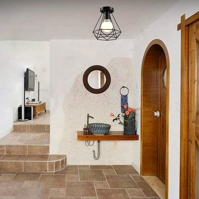 Ceiling Lamp - Metal - Black - 25×20×25 cm