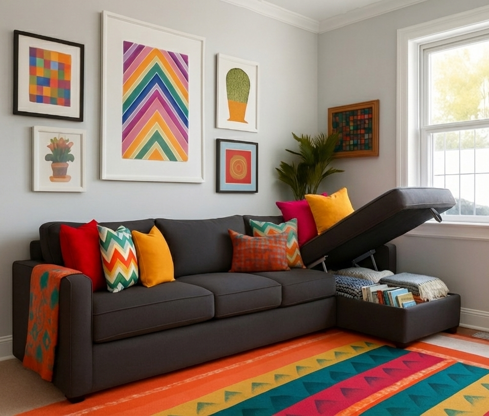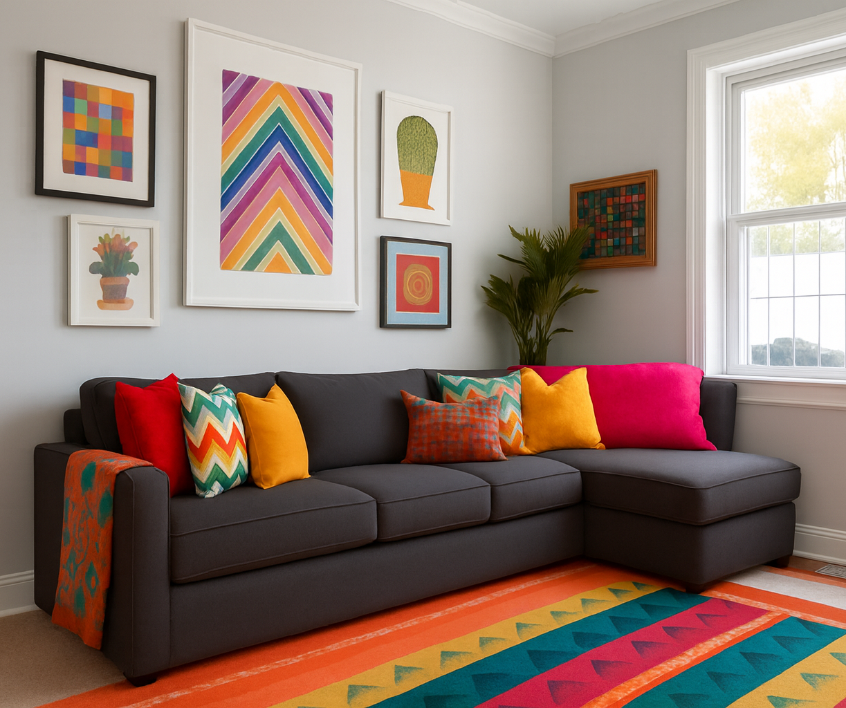 Stylish L-shape sofa crafted from sturdy beech wood with vibrant Gray upholstery. Combines comfort, durability, and a lively design — a perfect blend of elegance and practicality for any living space.