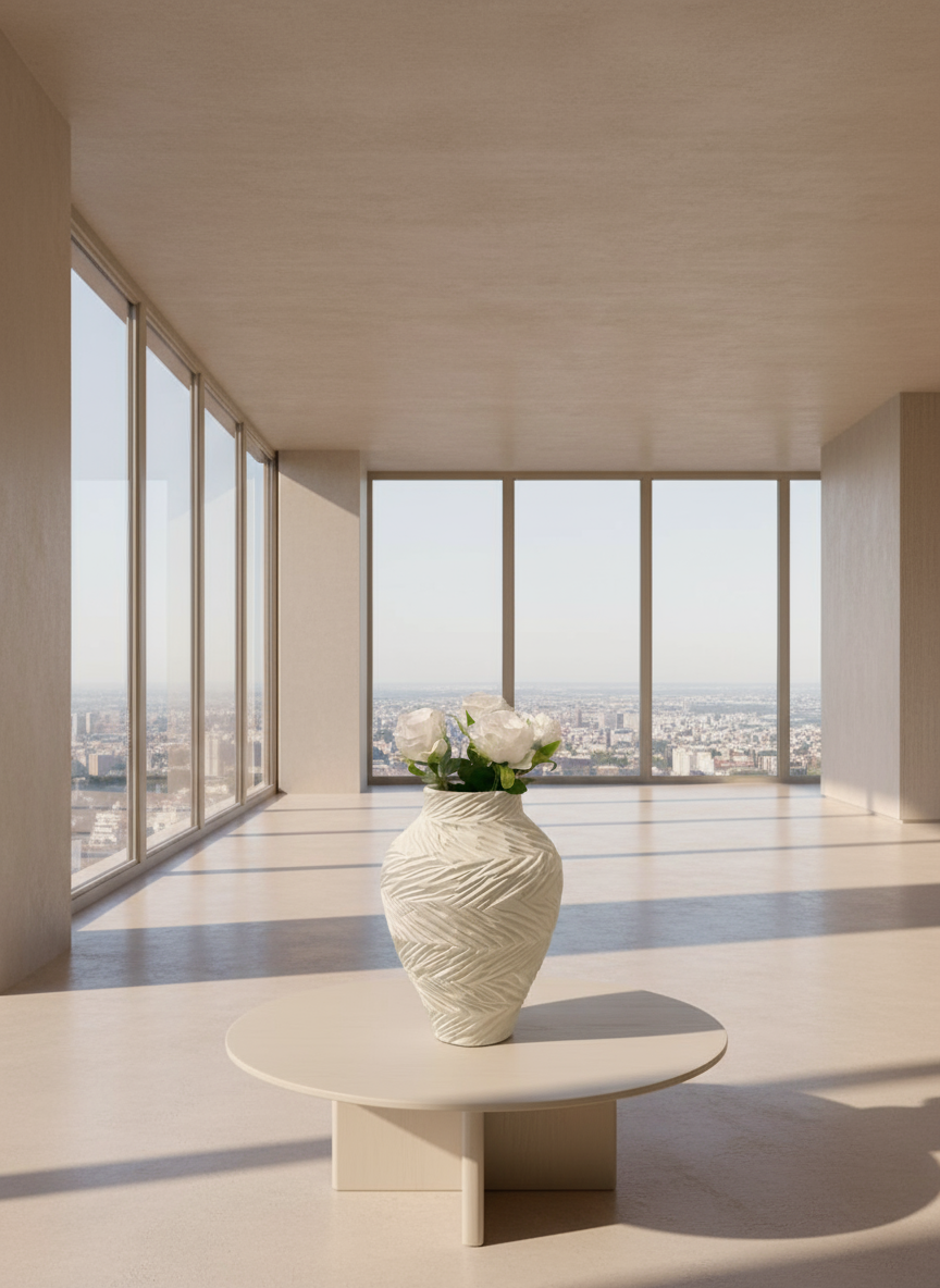 This off-white pottery vase, sized 12x28 cm, combines simplicity and elegance to enhance any room. Its refined shape and neutral color make it a versatile decor piece that highlights your flowers or stands beautifully on its own. Crafted with care, it adds a proud statement of style and subtle sophistication to your living space.