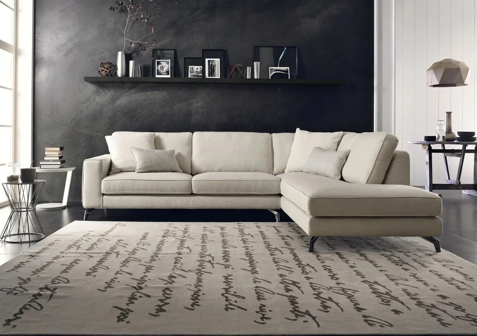 A Modern sofa with a sleek design that adds a stylish decorative touch. It offers spacious seating with a side lounge area, combining comfort and contemporary style perfect for modern living rooms and family spaces.
