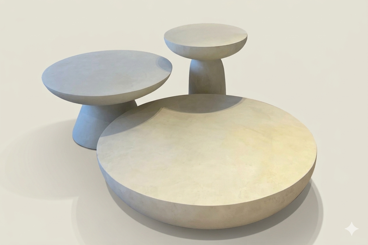 ترابيزة أنيقة مصنوعة من الألياف الزجاجية تجمع بين المتانة والتصميم المعاصر .