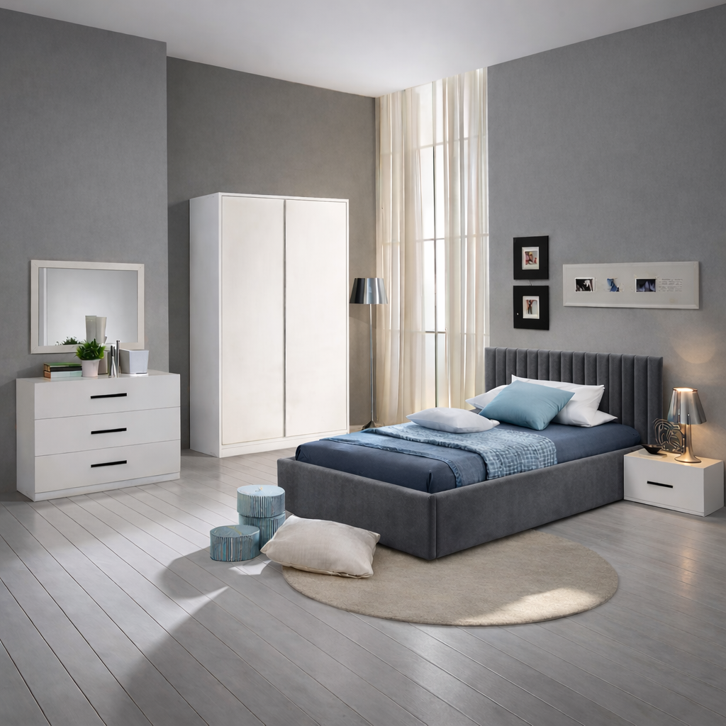 جدد غرفة نوم ابنك/ابنتك مع طقم غرفة النوم الكامل المصنوع من خشب ام دي اف باللون الأبيض الناصع. يتميز هذا الطقم بإطار سرير متين، وطاولة جانبية متناسقة، وحلول تخزين عملية، ليمنحك مظهرًا عصريًا متكاملًا. يوفر هيكل ام دي اف المتين قيمة ممتازة، بينما يضفي اللون الأبيض النقي إشراقة على أي مساحة ويتناغم بسهولة مع ديكور الغرفة الحالي. مثالي لخلق ملاذ عملي وأنيق ينمو مع ابنك/ابنتك