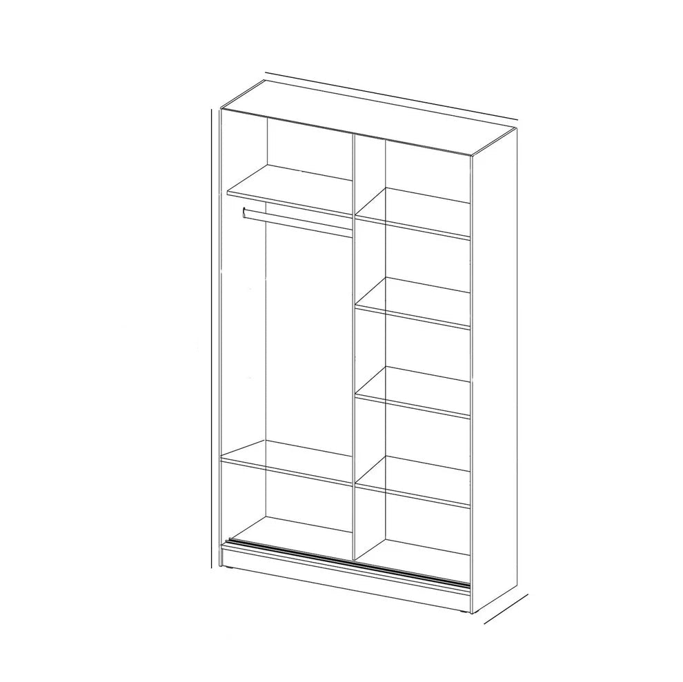 الدولاب: العرض 120 سم - العمق 52 سم - الارتفاع 200 سم