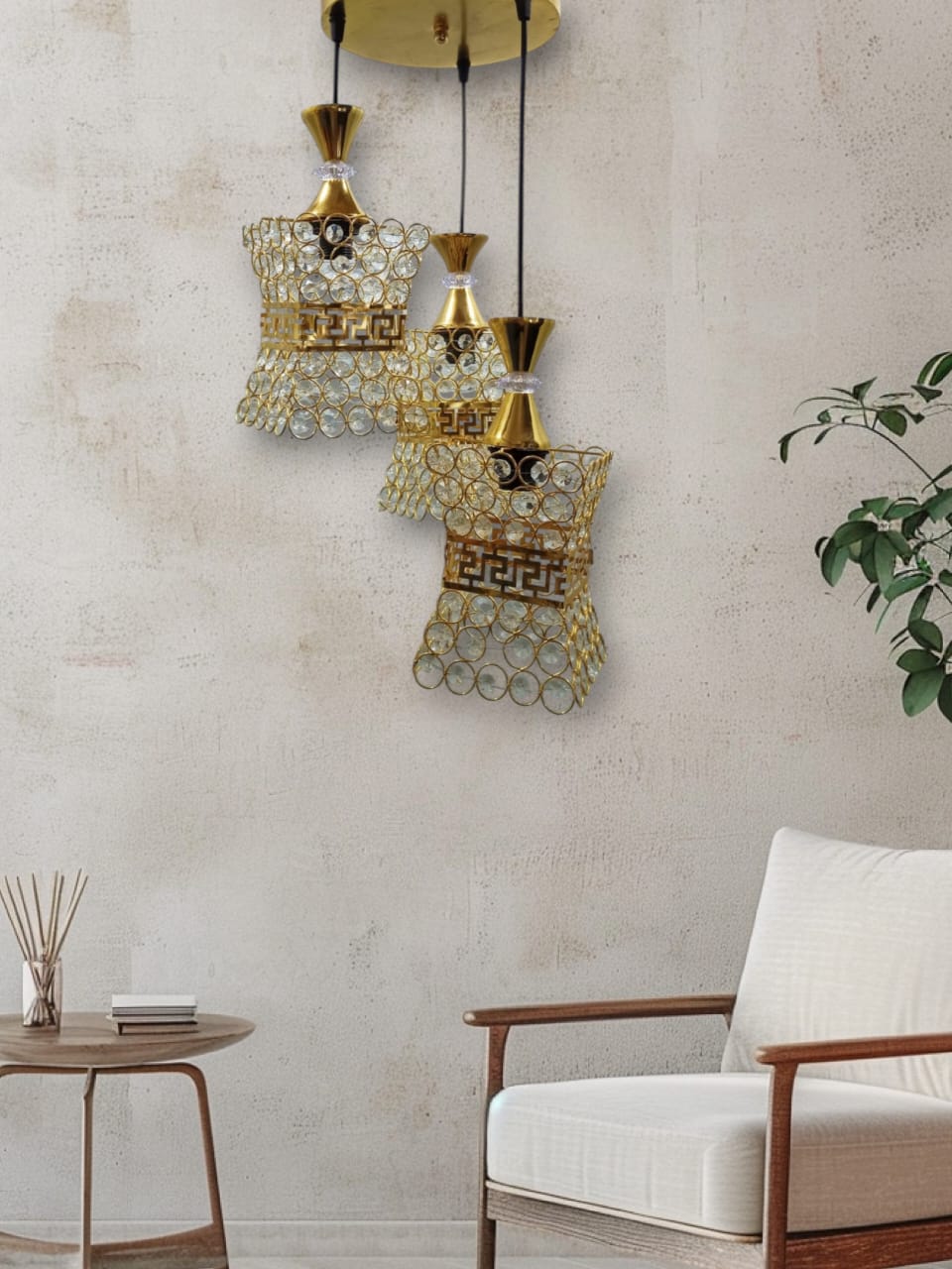 مصباح سقف - معدن وكريستال - ذهبي - 75 × 30 سم