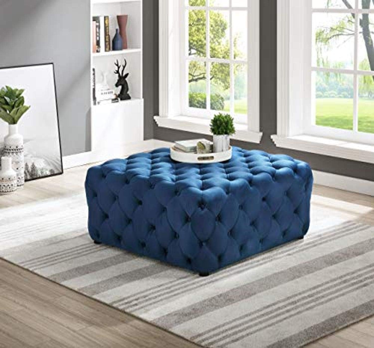 بوف - خشب كونتر - قماش قطيفة - أزرق - 80 × 80 سم