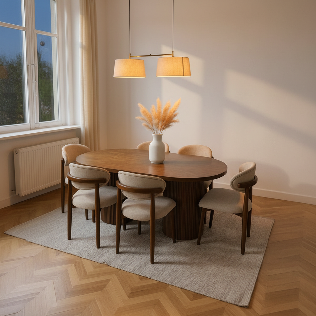 طاولة طعام - تصميم عصري من خشب MDF، وكراسي من خشب الزان. متينة وأنيقة، ومثالية لغرف الطعام.