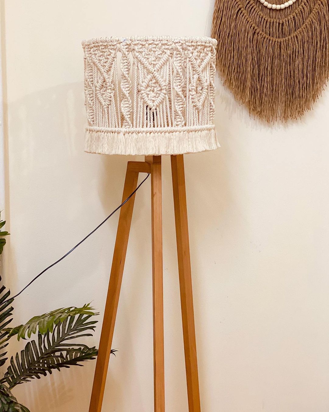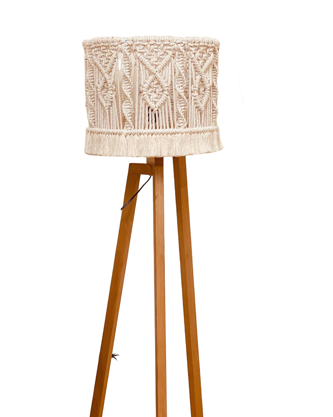 يتميز هذه ألاباجوره الأنيق بإطار من خشب الزان المتين مع خيوط قطنية ناعمة بدرجات لونية مهدئة من الؤف وايت والبيج. يبلغ ارتفاعه 165 سم وقاعدته 40 سم، ويوفر إضاءة دافئة ومنتشرة تُضفي لمسة جمالية على أي مساحة معيشة. مواده الطبيعية وألوانه المحايدة تُضفي لمسة من السحر البسيط، بينما يُضفي إضاءة أنيقة وعملية على منزلك.