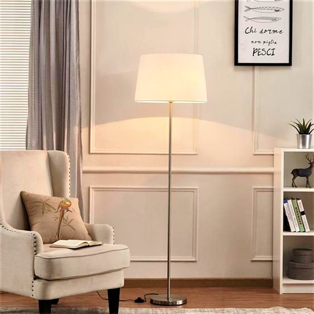 مصباح أرضي - معدني - فضي وأبيض - 155 × 35 سم