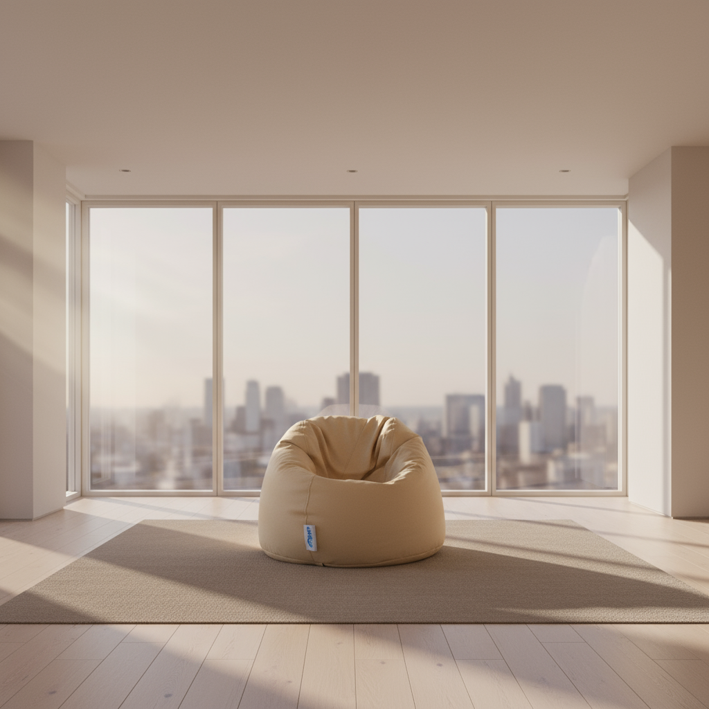 كرسي بين باج جلدي كبير - جلد فاخر - بيج - 95×70 سم
