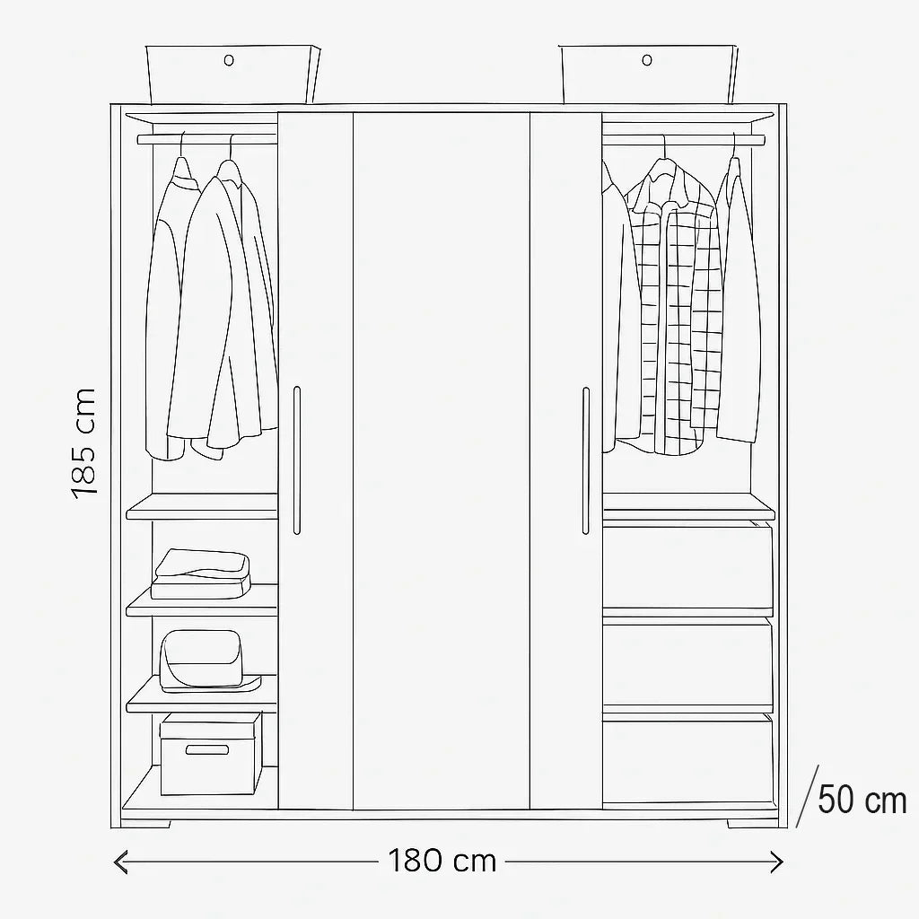 دولاب - خشب ام دي اف - ابيض - 50x180x185 سم