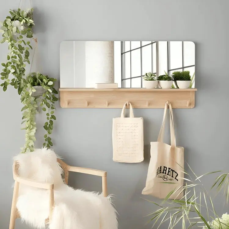 مرآة مع علاقة -PW- لون خشبي-90x12x60 سم