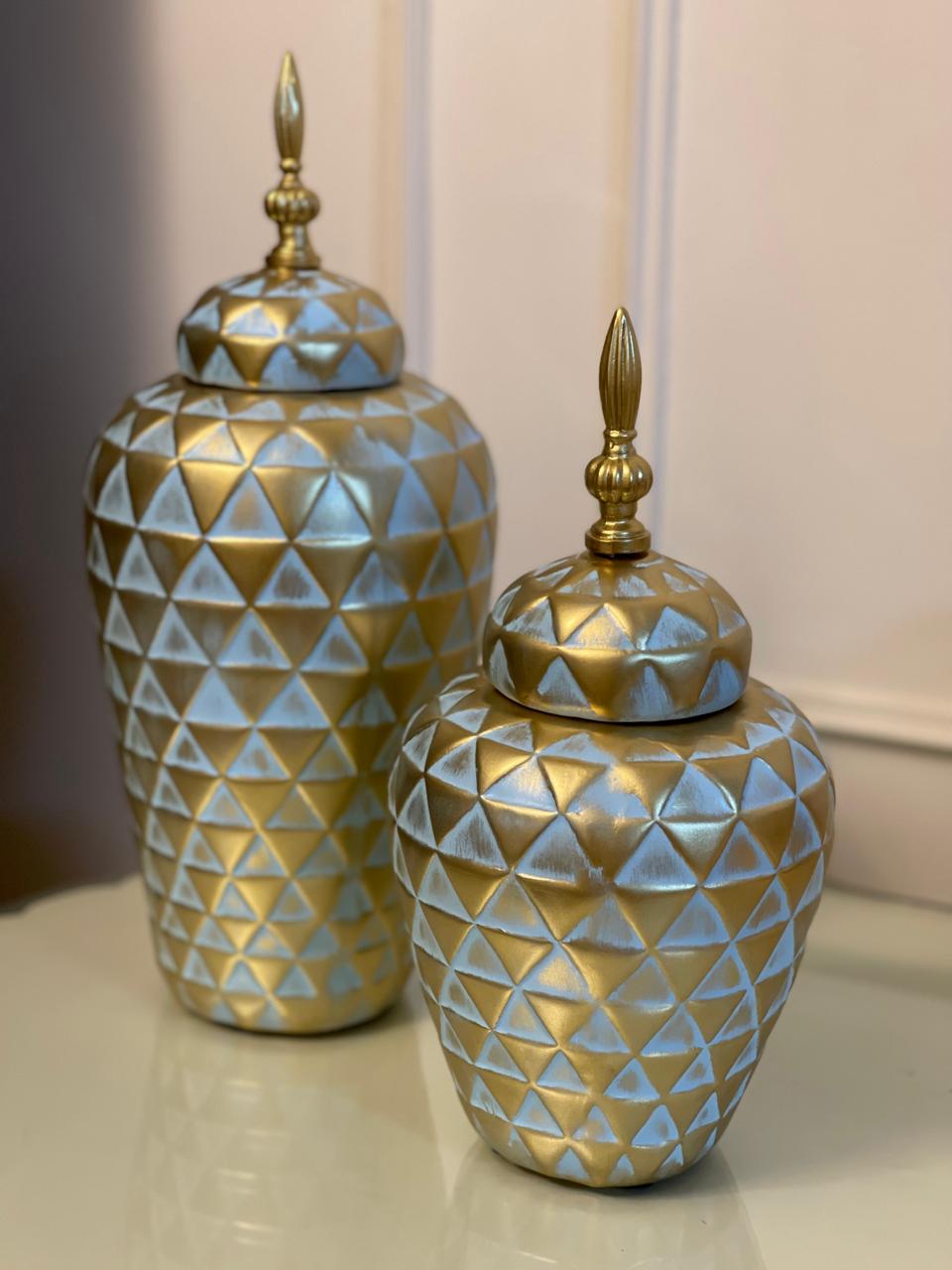 مزهرية بوليستر - بوليستر - أزرق وذهبي - مقاسات متعددة