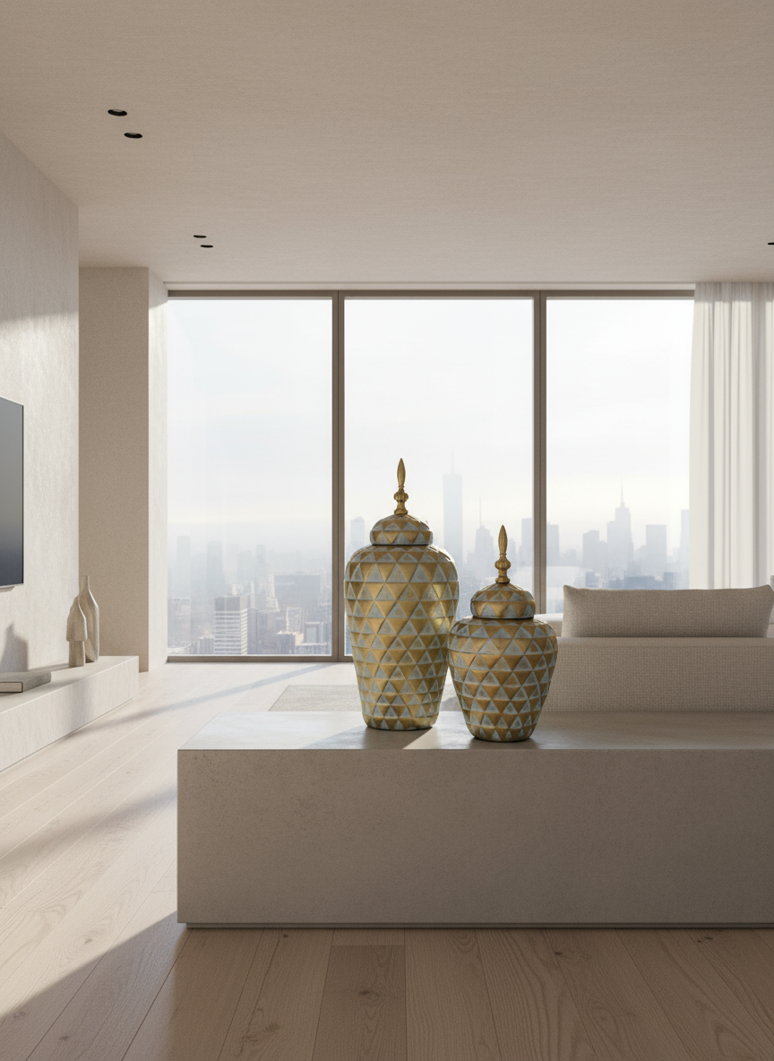 أضف لمسةً مميزةً إلى ديكور منزلك مع هذه المزهرية البوليستر الأنيقة باللون الازرق والذهبي بقياس 29×73 سم. صناعتها الراقية ولونها الرقيق يضفيان سحرًا خالدًا على أي مساحة، مما يجعلها مثالية لعرض الزهور أو كقطعة فنية مميزة. صُممت هذه المزهرية لتتناسب بسلاسة مع مختلف أنماط الديكور، وتضفي على منزلك لمسةً من الرقي والدفء.