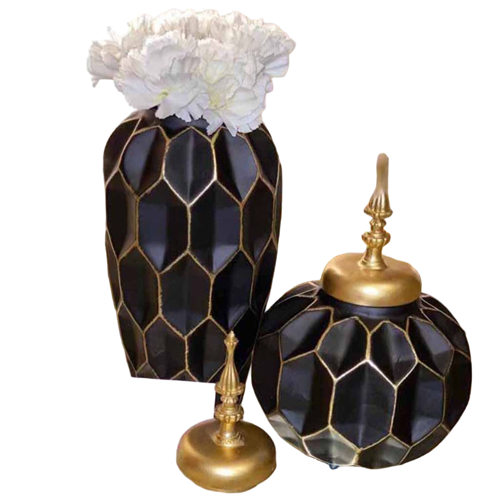 مزهرية بوليستر - بوليستر - أسود وذهبي - مقاسات متعددة