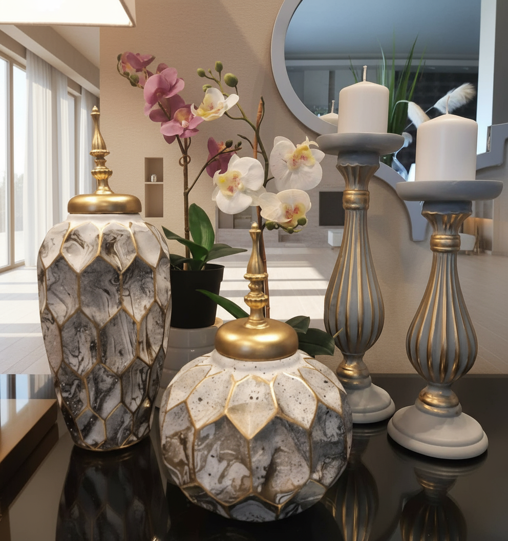 مزهرية بوليستر - بوليستر - رخام - متعددة الأحجام
