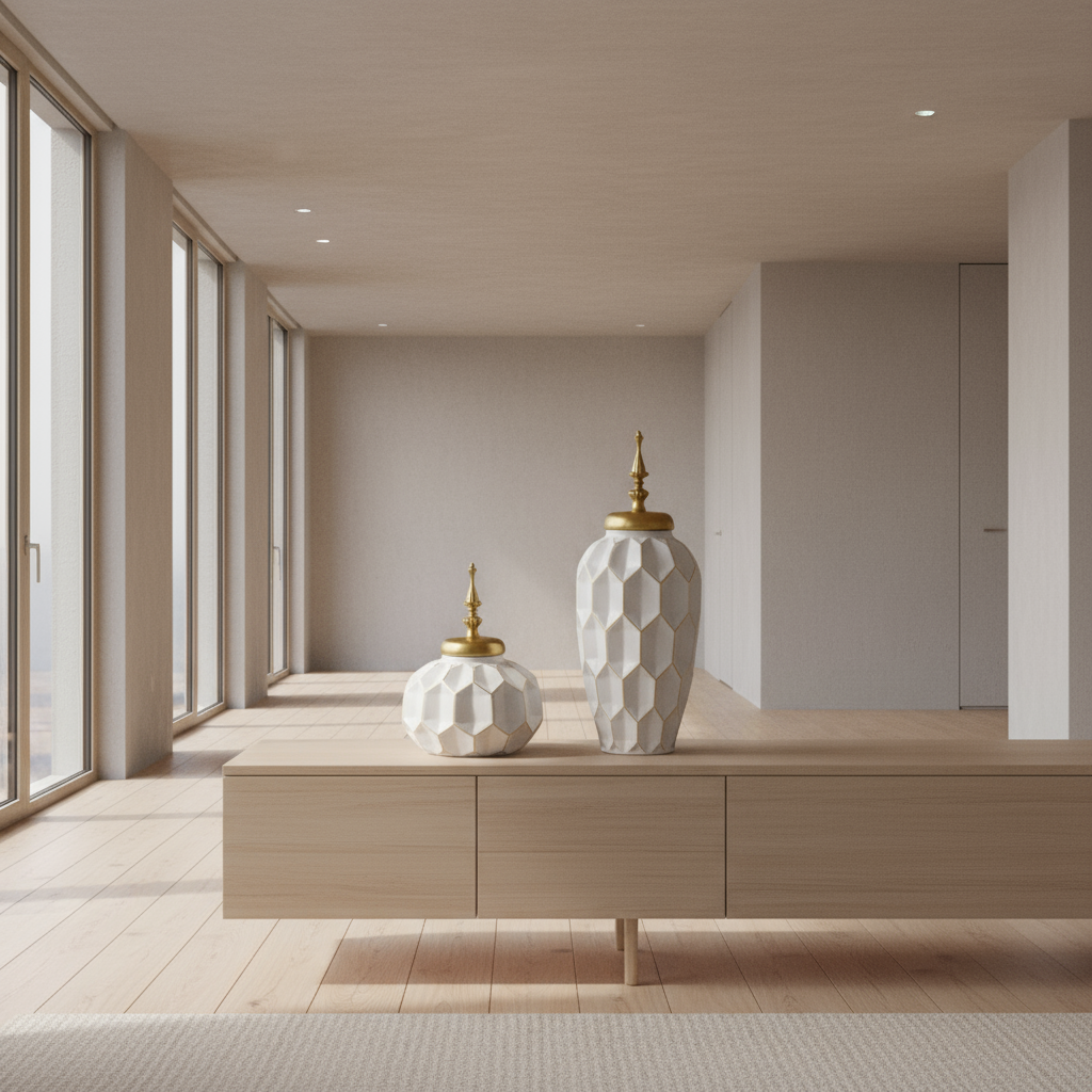حسّن ديكور منزلك بهذه المزهرية الأنيقة المصنوعة من البوليستر باللونين الأبيض العاجي والذهبي، والمتوفرة بأحجام متعددة تناسب أي مساحة. تصميمها الأنيق يضفي لمسة من الرقي، بينما تضمن خامة البوليستر المتينة جمالاً يدوم طويلاً. مثالية لعرض الأزهار الطازجة أو كقطعة فنية مستقلة، تضفي هذه المزهرية سحرًا خالدًا وأناقة راقية على منزلك أو مكتبك.