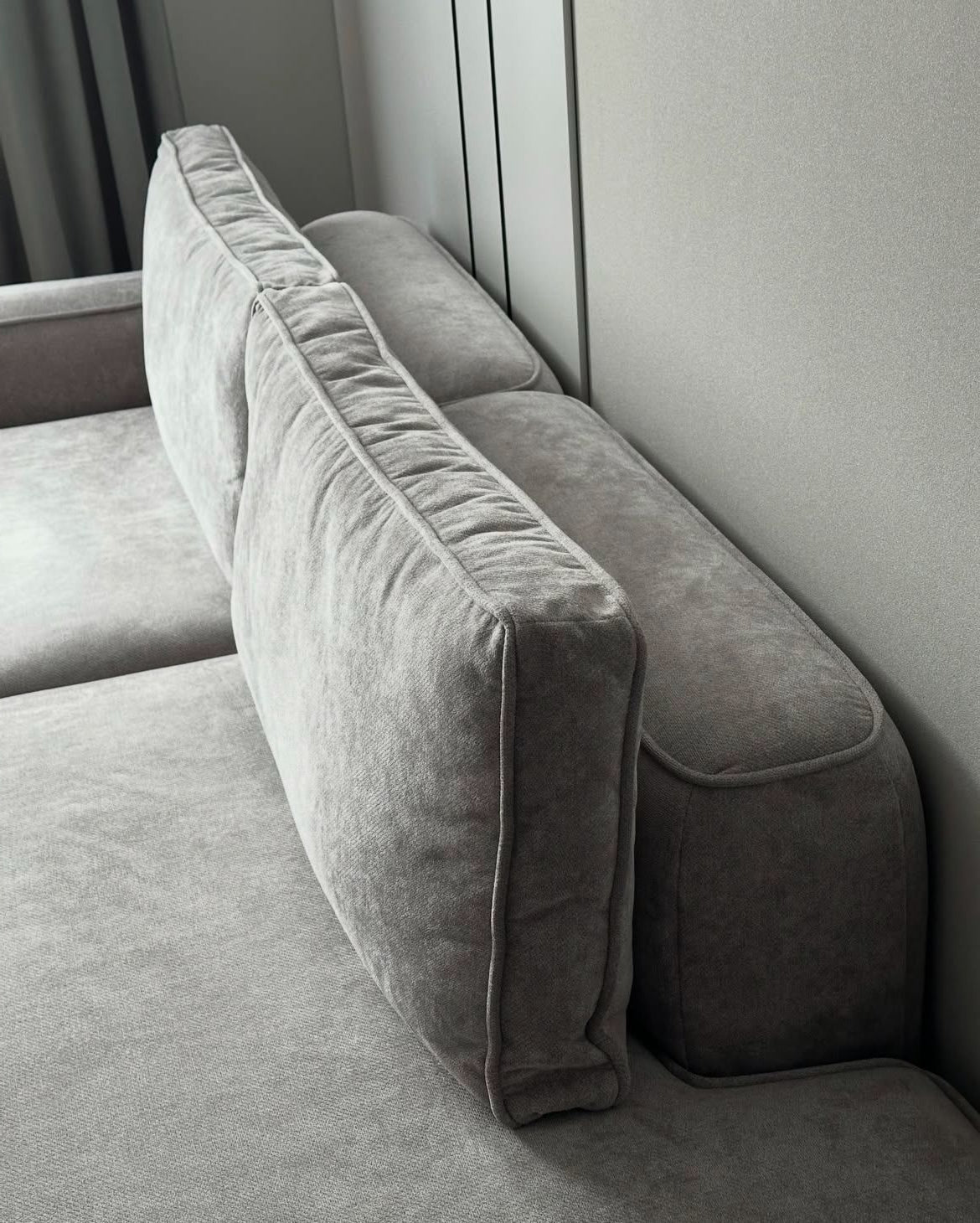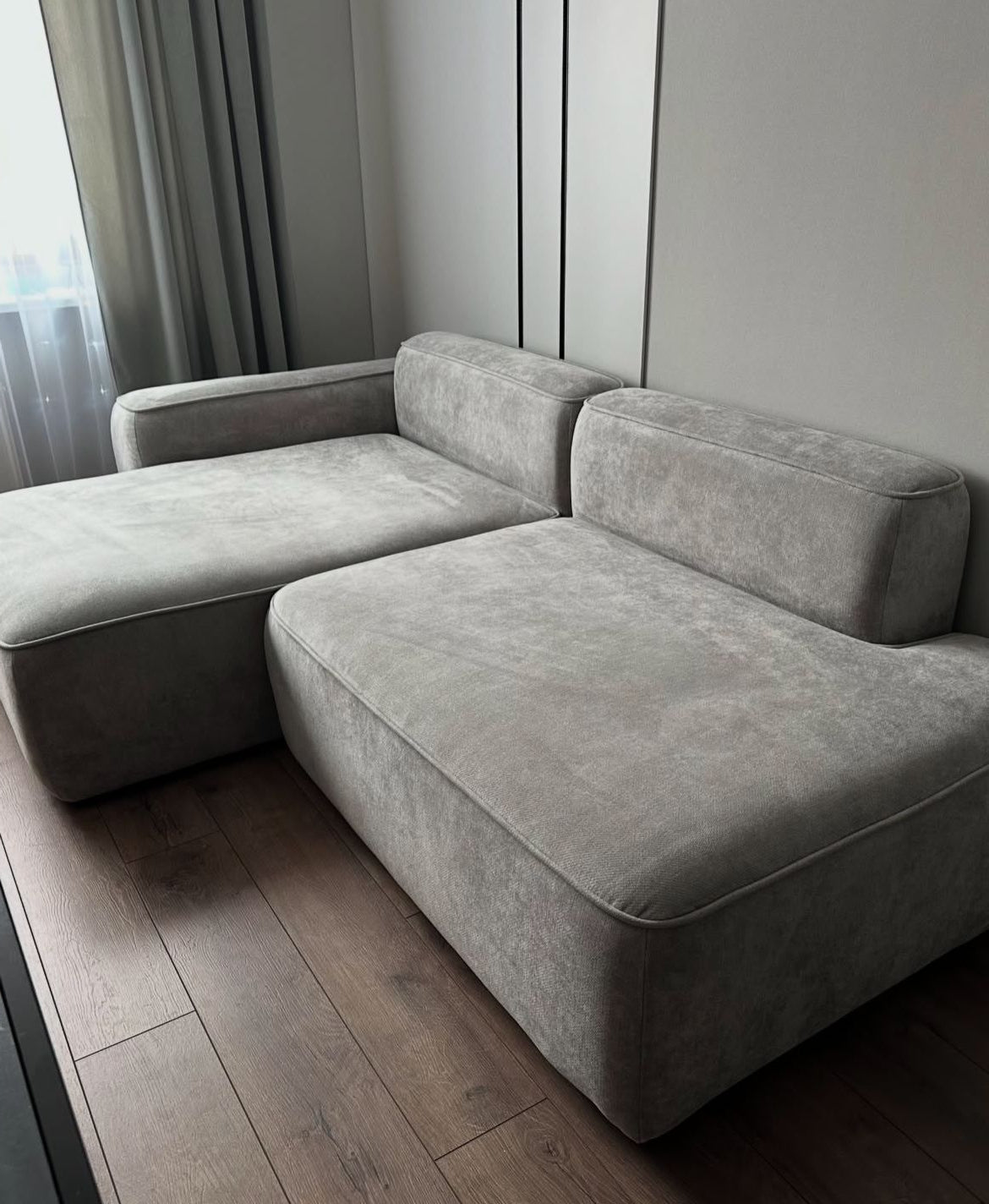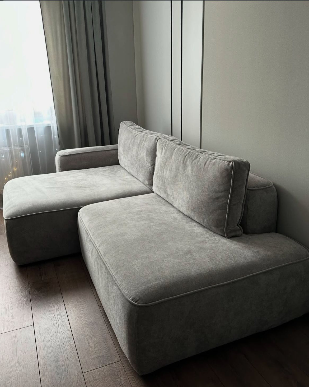 أريكة على شكل حرف L - خشب ام دي اف - رمادي - 200×150×90 سم