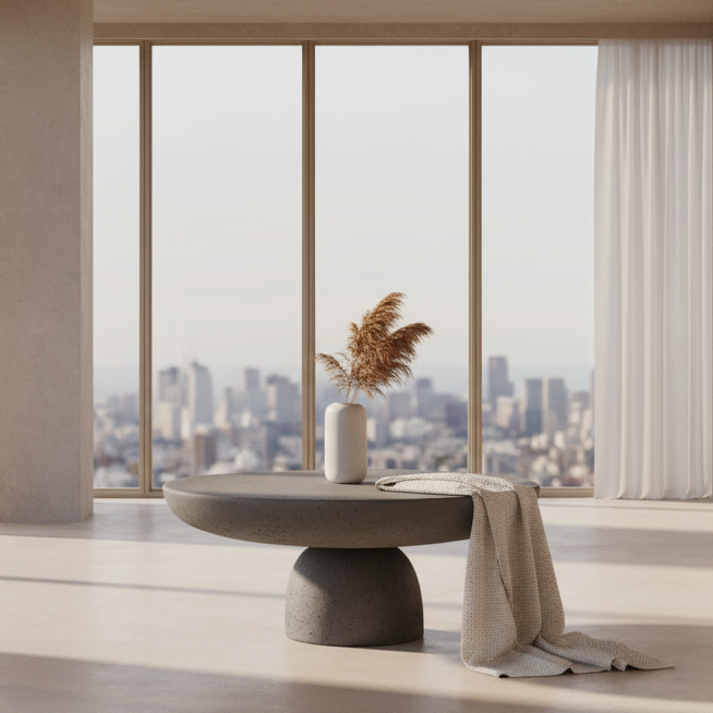 ترابيزة أنيقة مصنوعة من الألياف الزجاجية تجمع بين المتانة والتصميم المعاصر .