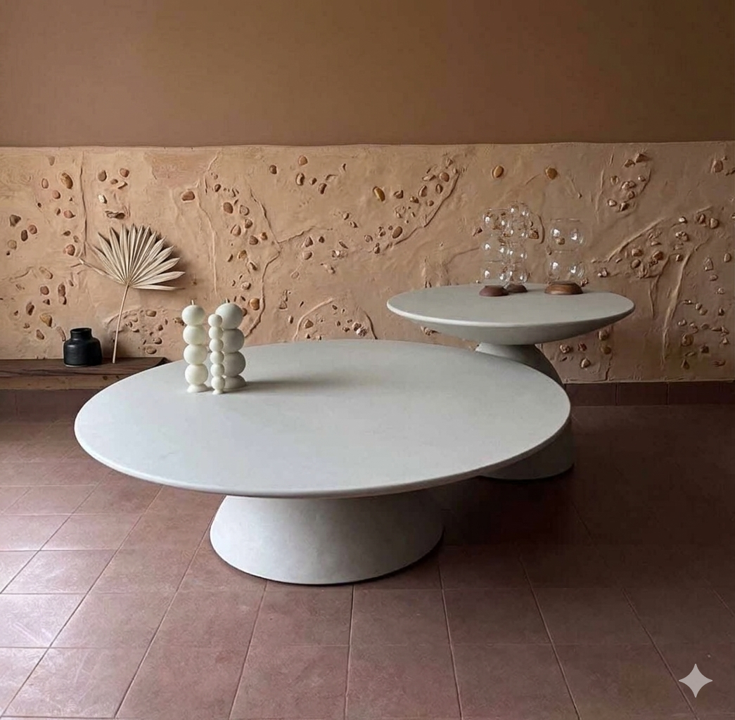 ترابيزة أنيقة مصنوعة من الألياف الزجاجية تجمع بين المتانة والتصميم المعاصر .