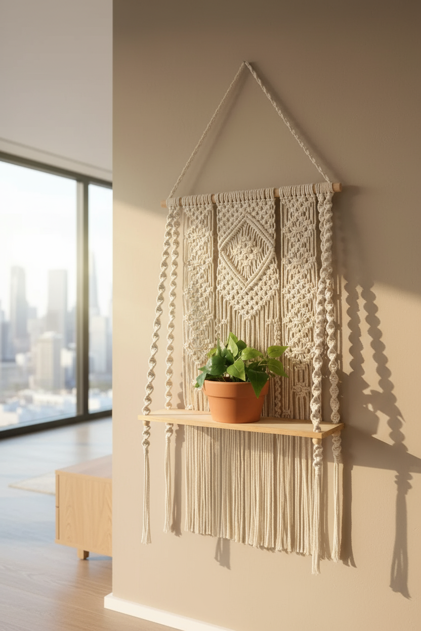 ارتقِ بمساحة معيشتك مع ديكور الحائط هذا المصنوع من الخشب الطبيعي وخيوط القطن الناعمة. يتميز بلوحة ألوان هادئة من الؤف وايت والبيج، وحجمه 100×60 سم، مما يوفر توازنًا مثاليًا بين الدفء والملمس، ليُكمل أي غرفة. تُضفي هذه القطعة الأنيقة سحرًا رقيقًا مصنوعًا يدويًا، يُضفي لمسةً من الأناقة على منزلك، ويعكس أسلوبًا خالدًا.