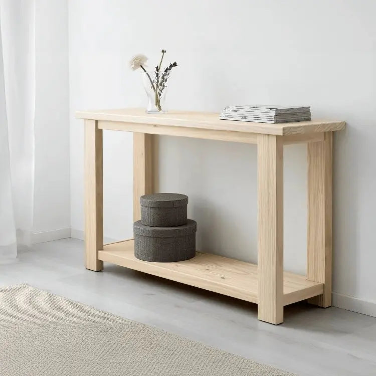هذه الكونسول الخشبية، بأبعاد 105×40×80 سم، تجمع بين التصميم العملي والأناقة الطبيعية. يضفي لمستها الخشبية الدافئة لمسةً خالدةً على أي مساحة، مع توفير خيارات واسعة من الأسطح والتخزين في مساحة صغيرة. مثالية لتنظيم الضروريات أو لعرض الديكور، فهي تُضفي لمسةً أنيقةً وعمليةً على غرفتك بكل سهولة.
